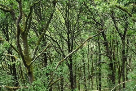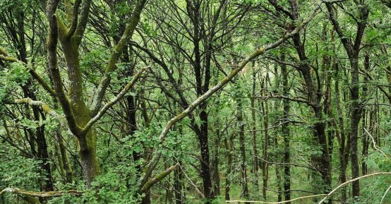Neben den Eichen finden Sie auch andere Baumarten, von denen einige mit einem vernünftigen Ausdruck, wie Kastanien, Stechpalmen, Erlen, Weiden, Eschen und wilden Birnen und Gilbardeira.