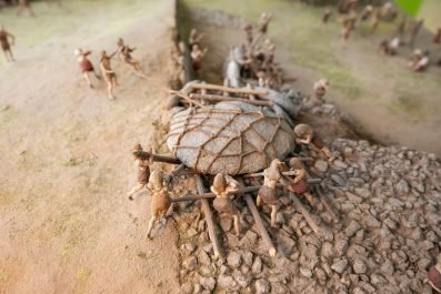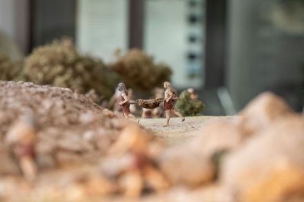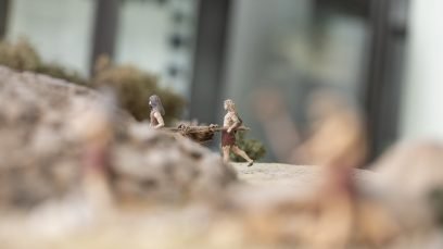 Ein didaktisches Modell mit 120 menschlichen Figuren veranschaulicht die verschiedenen Bauphasen eines Tapirs und der jeweiligen Mamoa (Hügel an Land und Stein). Der Besucher lernt die verschiedenen Arten von Grabmonumenten und die Entwicklung ihres Rituals von der Jungsteinzeit bis zur endgültigen Bronze kennen.