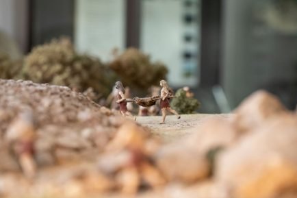A didactic model with 120 human figures illustrates the different stages of construction of a dolmen and its tumulus (mound made of soil and stone). Visitors learn about the different burial monuments and the evolution of this ritual throughout the Neolithic period until the end of the Bronze Age.