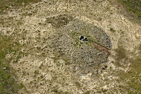 The monument is located at the centre of a large plateau on top of a granitic outcrop, complementing the landscape. The Dolmen is enclosed but with a small “window” facing east. The stones covering the tumulus were kept and a similar structure was built on the excavated areas in order to protect the monument. monument.