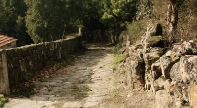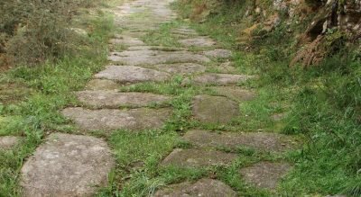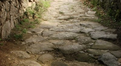 A sidewalk of Roman tradition, maintaining a small part where it is still possible to identify the methodology used by the Romans in the construction of roads.