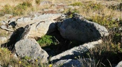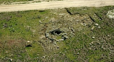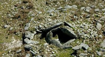 En torno al tumulus se identificó un forjado horizontal y una estructura periférica compuesta por dos losas clavadas en el suelo que delimitan un espacio rellenado por pequeñas piedras y por una estructura rectangular.