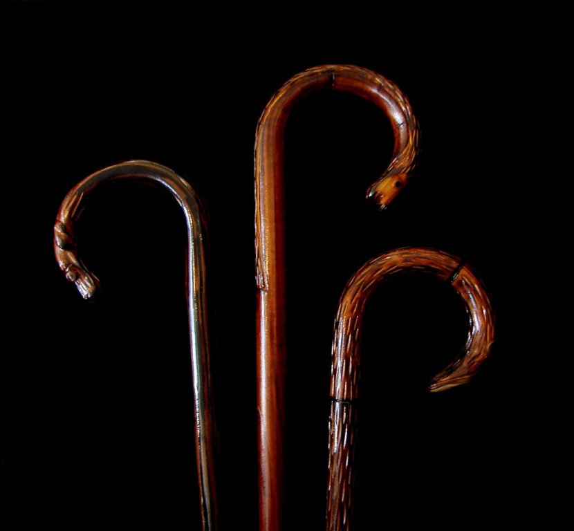 Imitation de têtes d'animaux dans la partie supérieure de la croca. Actuellement, l'artisan utilise des incrustations dans l'os, pour la figuration des yeux, qui ont remplacé celles de l'ivoire.