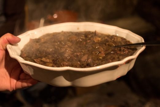 Ingrédients utilisés: Ancho de +/- 10 kg, laurier, persil, ail, huile d'olive, oignon, paprika, bacon, "saindoux", vin blanc, sel, riz, pommes de terre.
