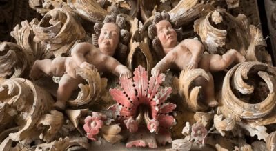 La décoration des retables, de la chaire et du toit de la nef fait déjà partie du baroque national.