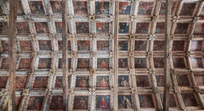 Soulignez également la doublure de plafond décorée de cercueils polychromes avec des cadres en sculpture dorée. Les peintures sont figuratives et hiérarchisées. À côté de la croix, les apôtres sont disposés, suivis des mystères du Christ et des saints. Il convient également de noter que toutes les figures du choeur montrent des instruments et des motifs musicaux.