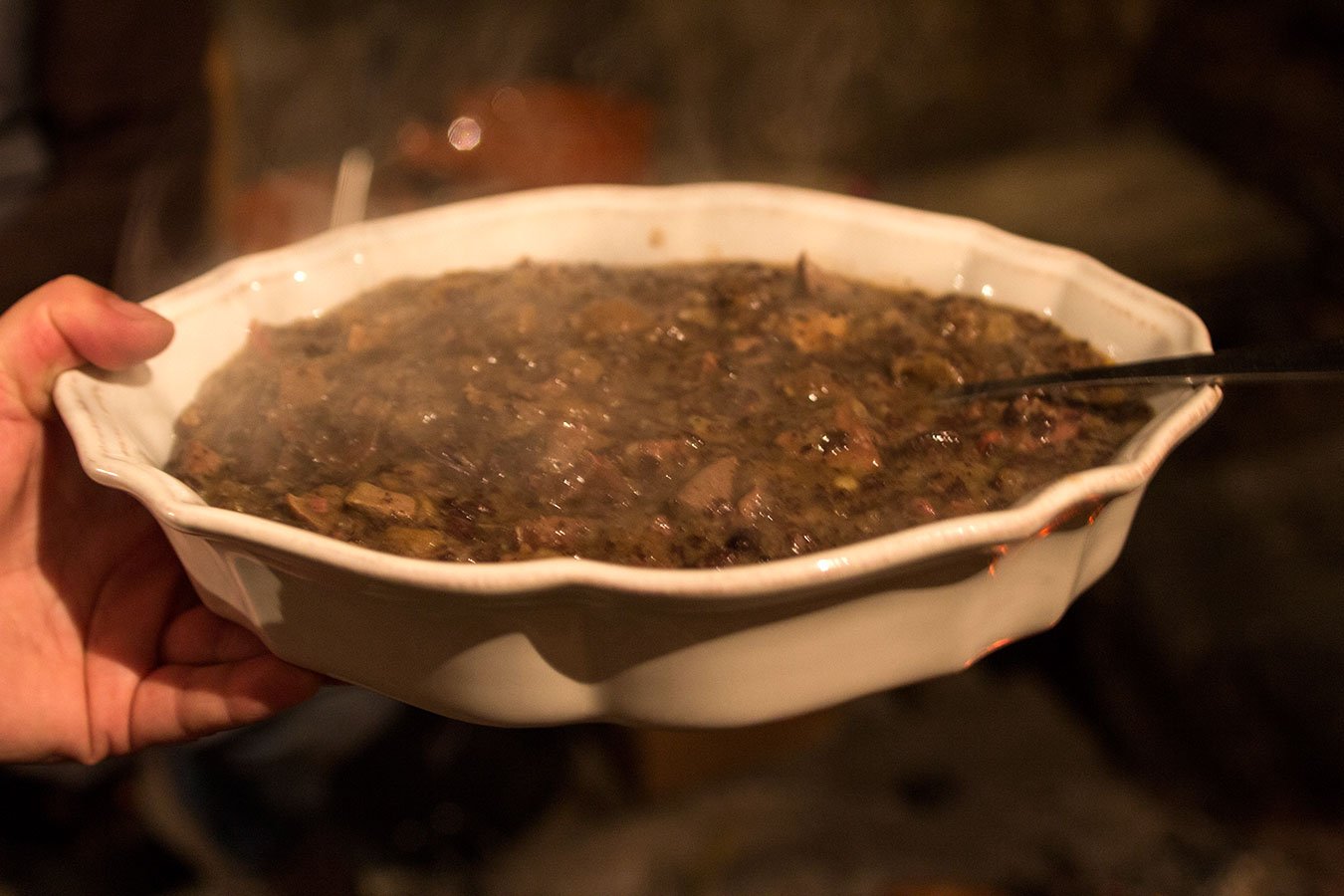 Ingredientes utilizados: Anho de +/- 10Kg de peso, louro, salsa, alho, azeite, cebola, colorau, toucinho, “banha de porco”, vinho verde branco, sal, arroz, batatas.
