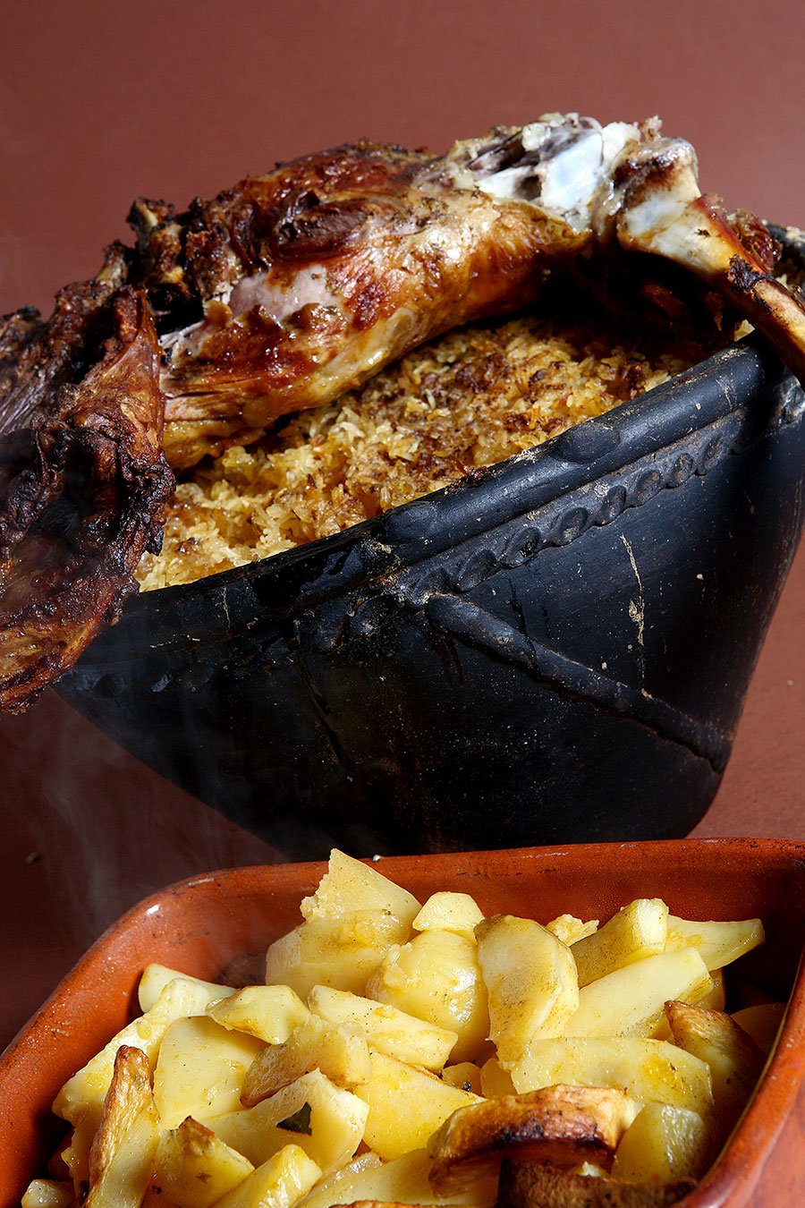 Confecionar o Anho Assado com Arroz de Forno