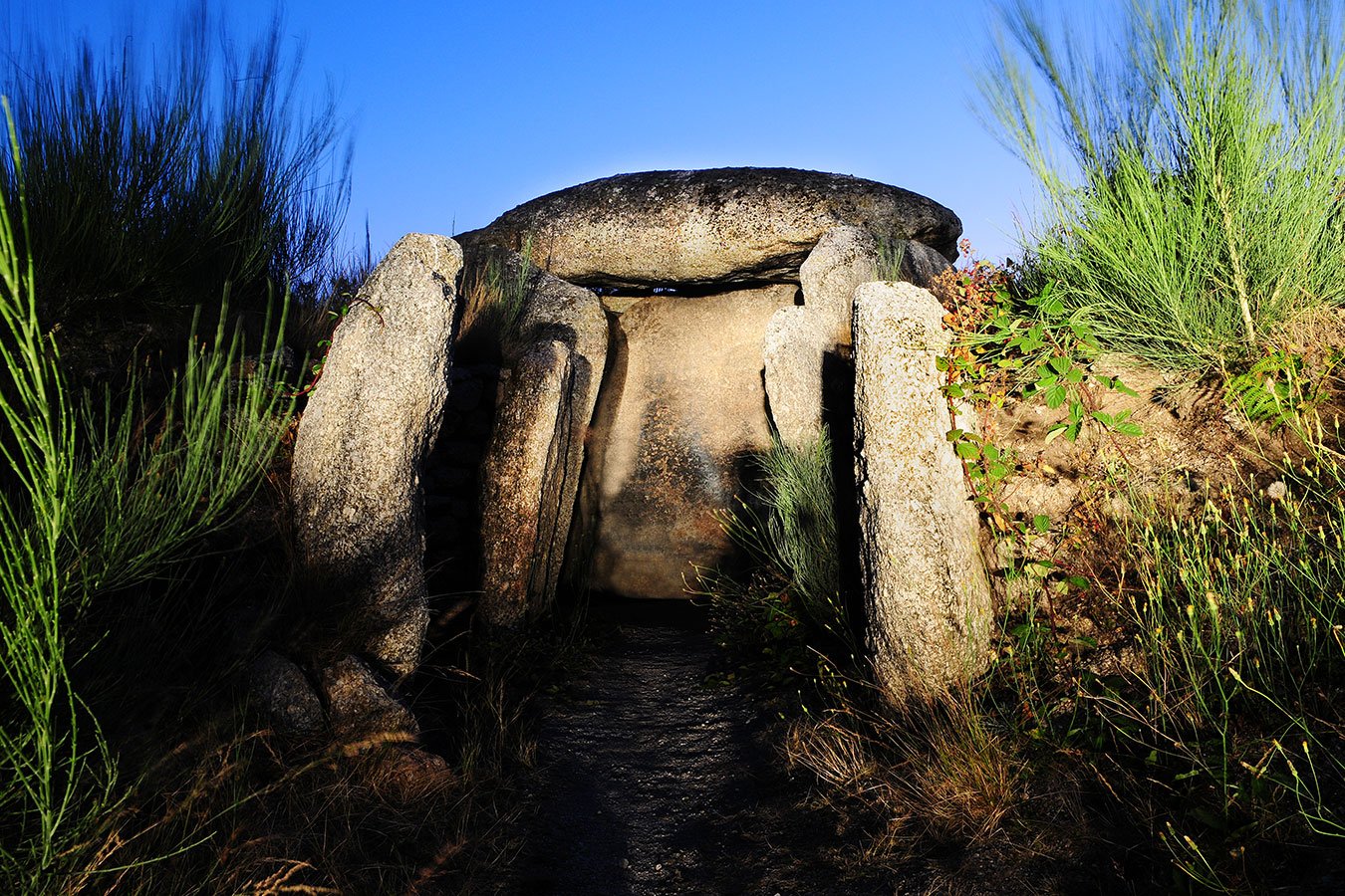 “O viajante dá a volta, aí está o corredor, e lá dentro a câmara espaçosa, mais alto todo o conjunto do que pelo lado de fora parecia (…) e de baixo nada tem. Não há limites para o silêncio. Debaixo destas pedras, o viajante retira-se do mundo. (…) que homens terão levantado à força de braço esta pesadíssima laje, desbastada e aperfeiçoada como uma calote, e que falas se falaram debaixo dela, que mortos aqui foram deitados. O viajante senta-se no chão arenoso, colhe entre dois dedos um tenro caule que nasceu junto de um esteio, e, curvando a cabeça, ouve enfim o seu próprio coração.”