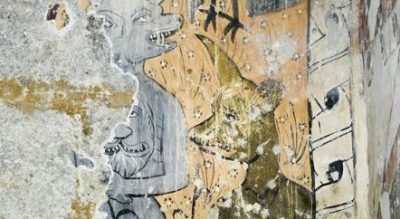 In the north façade, the dogs are figurative and geometric, although with a fruity trait.